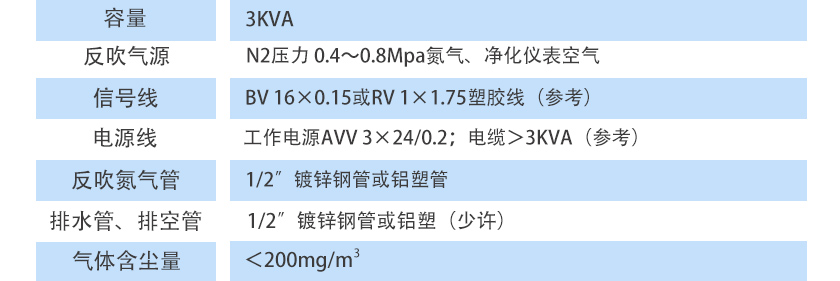 N2壓力 0.4~0.8Mpa氮氣、凈化儀表空氣 |