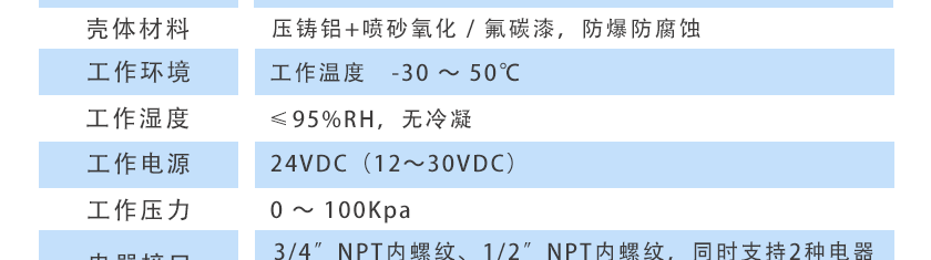 3/4″NPT內(nèi)螺紋、1/2″NPT內(nèi)螺紋,同時(shí)支持2種電器連接方式 |