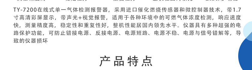 采用進(jìn)口催化燃燒傳感器和微控制器技術(shù),帶2.5寸高清彩屏實(shí)時(shí)顯示,帶聲光+視覺報(bào)警,現(xiàn)場(chǎng)多種氣體濃度 24 小時(shí)連續(xù)在線監(jiān)測(cè)及溫濕度的測(cè)量,適用于各種環(huán)境中的可燃?xì)怏w濃度檢測(cè),響應(yīng)速度快,測(cè)量精度高,穩(wěn)定性和重復(fù)性好,整機(jī)性能居國(guó)內(nèi)領(lǐng)先水平。儀器具有多種超強(qiáng)的電路保護(hù)功能,可防止錯(cuò)接電源、反接電源、電源短路、電源不穩(wěn)、電源與信號(hào)錯(cuò)解等,導(dǎo)致的儀器損壞。
