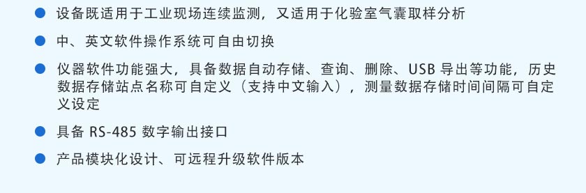 SO2、NO:0~20~100mg/m3; O2:0~25%; CO:0~625mg/m3; CO2:0~65%(量程可以根據(jù)用戶實際需求配置) |
