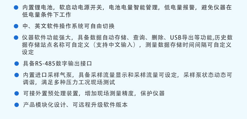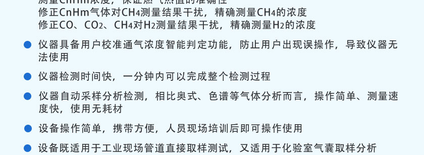 采用自主知識(shí)產(chǎn)權(quán)的NDIR非分光紅外技術(shù),主要用于測量氣體中的CO、CO2、CH4、C3H8、SO2、NO等氣體的體積濃度及熱值。全進(jìn)口傳感器、測量精度高、結(jié)構(gòu)簡單、維護(hù)方便,軟件功能強(qiáng)大,可拓展性強(qiáng)、現(xiàn)場實(shí)用性好,目前暢銷國內(nèi)外。