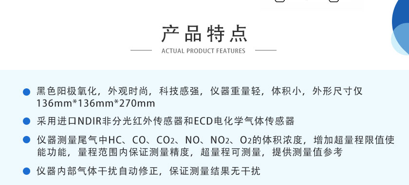 HC:0-9999 ppm,CO:0-10%,CO2:0-20%,NO:0-5000ppm,O2:0-25% |