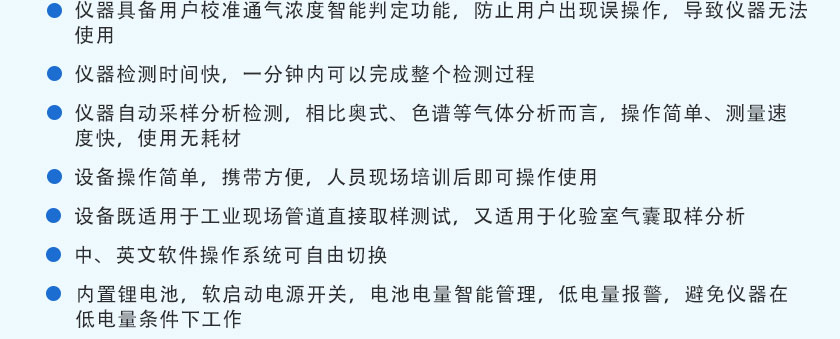 采用自主知識產(chǎn)權(quán)的NDIR非分光紅外技術(shù),主要用于測量氣體中的CO、CO2、CH4、C3H8、SO2、NO等氣體的體積濃度及熱值。全進(jìn)口傳感器、測量精度高、結(jié)構(gòu)簡單、維護(hù)方便,軟件功能強(qiáng)大,可拓展性強(qiáng)、現(xiàn)場實(shí)用性好,目前暢銷國內(nèi)外。