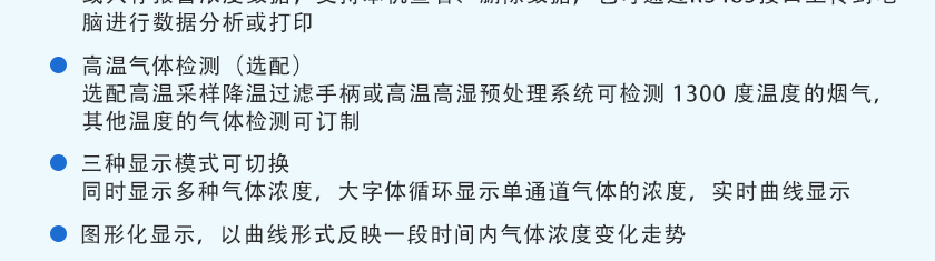 固定式安裝,在線檢測,擴散式測量,管道式、流通式、泵吸式可選 |