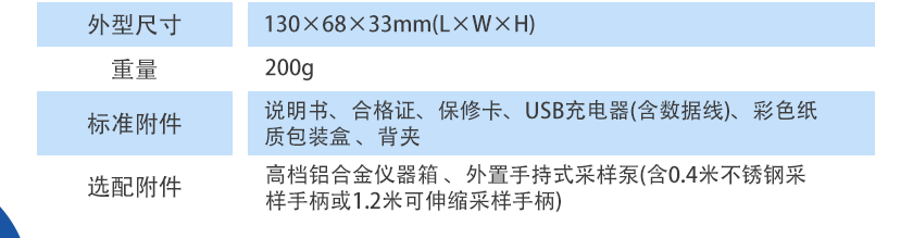 高檔鋁合金儀器箱 、外置手持式采樣泵(含0.4米不銹鋼采樣手柄或1.2米可伸縮采樣手柄) |