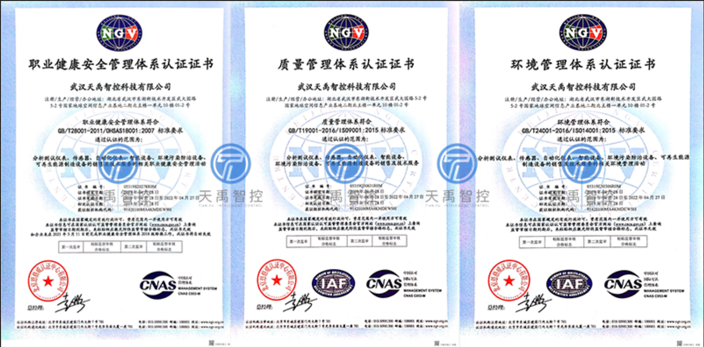 2019年4月29日,天禹智控獲得了ISO9001質(zhì)量管理體系認證證書、ISO14001環(huán)境管理體系認證、OHSAS18001職業(yè)健康安全管理體系認證證書。據(jù)了解, ISO9001標準是許多經(jīng)濟發(fā)達國家實施質(zhì)量管理的經(jīng)驗總結(jié)。ISO14001環(huán)境管理體系標準是創(chuàng)建綠色企業(yè)的有效工具,對企業(yè)持續(xù)地開展環(huán)境管理工作及對企業(yè)的可持續(xù)發(fā)展起到有效地推動作用。OHSAS18001該標準為各類組織提供了結(jié)構(gòu)化的運行機制,幫助組織改善安全生產(chǎn)管理,推動職業(yè)健康安全和持續(xù)改進。它們具有普遍性、通用性和指導性。
