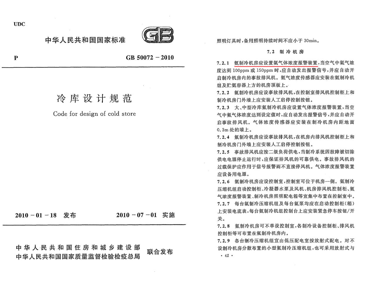 根據(jù)《GB50072-2010冷庫設(shè)計規(guī)范》氨制冷機房應(yīng)該設(shè)置氨氣濃度報警裝置: