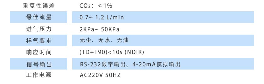 (6)重復(fù)性誤差:CO2:≤1%