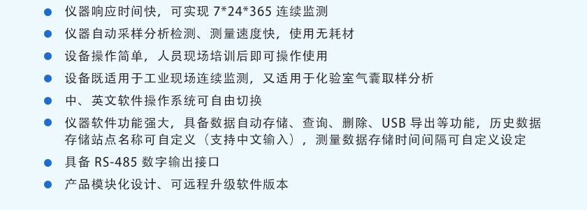 (7)儀器響應(yīng)時間快,可實現(xiàn)7*24*365連續(xù)監(jiān)測。