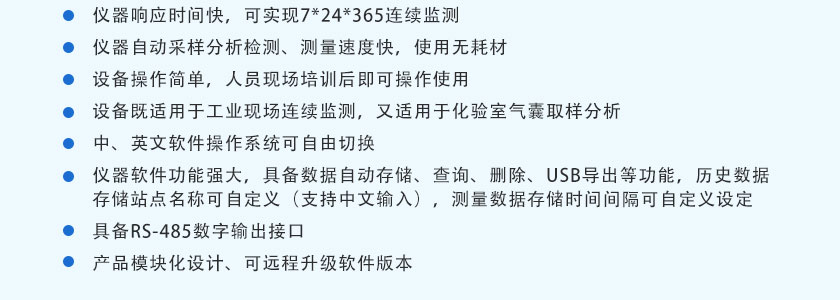 (7)儀器響應時間快,可實現(xiàn)7*24*365連續(xù)監(jiān)測。