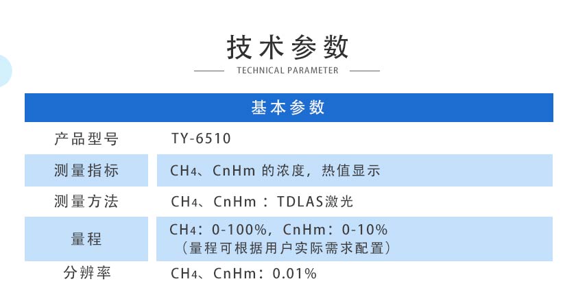 CH4:0-100%,CnHm:0-10%(量程可根據(jù)用戶實際需求配置) |