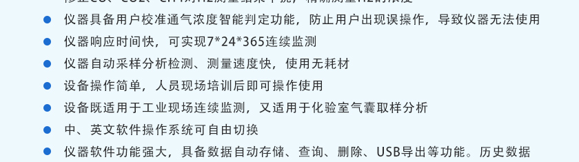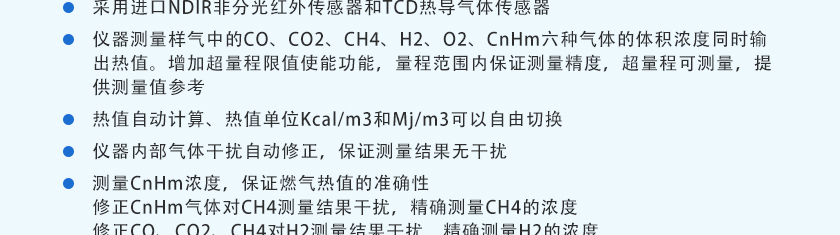 采用自主知識產(chǎn)權的NDIR非分光紅外技術,主要用于測量氣體中的CO、CO2、CH4、C3H8、SO2、NO等氣體的體積濃度及熱值。全進口傳感器、測量精度高、結構簡單、維護方便,軟件功能強大,可拓展性強、現(xiàn)場實用性好,目前暢銷國內(nèi)外。