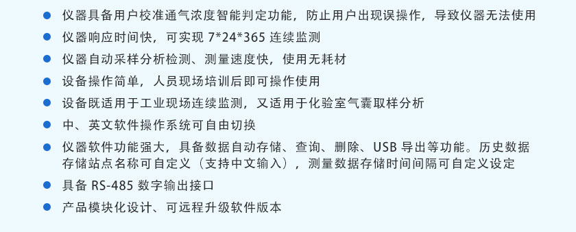 采用自主知識產權的NDIR非分光紅外技術,主要用于測量氣體中的CO、CO2、CH4、C3H8、SO2、NO等氣體的體積濃度及熱值。全進口傳感器、測量精度高、結構簡單、維護方便,軟件功能強大,可拓展性強、現(xiàn)場實用性好,目前暢銷國內外。