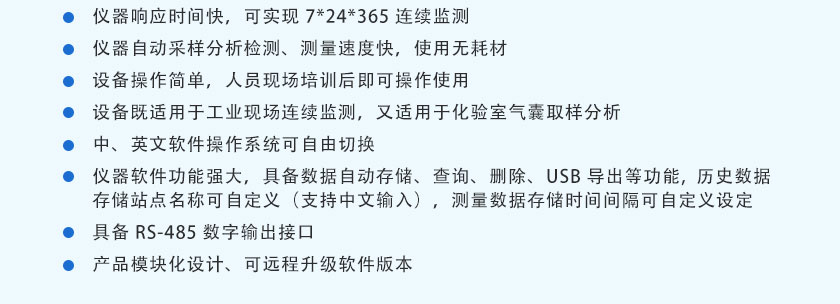 (8)儀器響應(yīng)時間快,可實現(xiàn) 7*24*365 連續(xù)監(jiān)測。