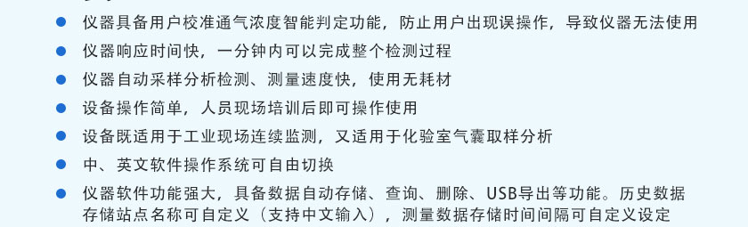 (11)設(shè)備既適用于工業(yè)現(xiàn)場連續(xù)監(jiān)測,又適用于化驗室氣囊取樣分析。